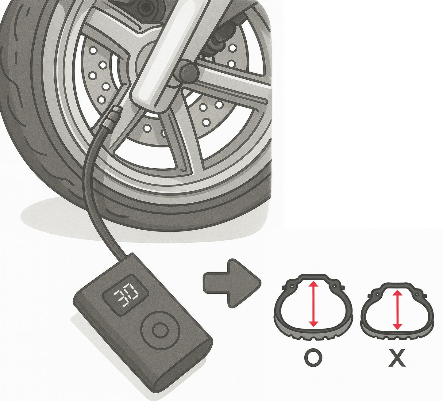 타이어 공기압, 트레드 잔량 확인
