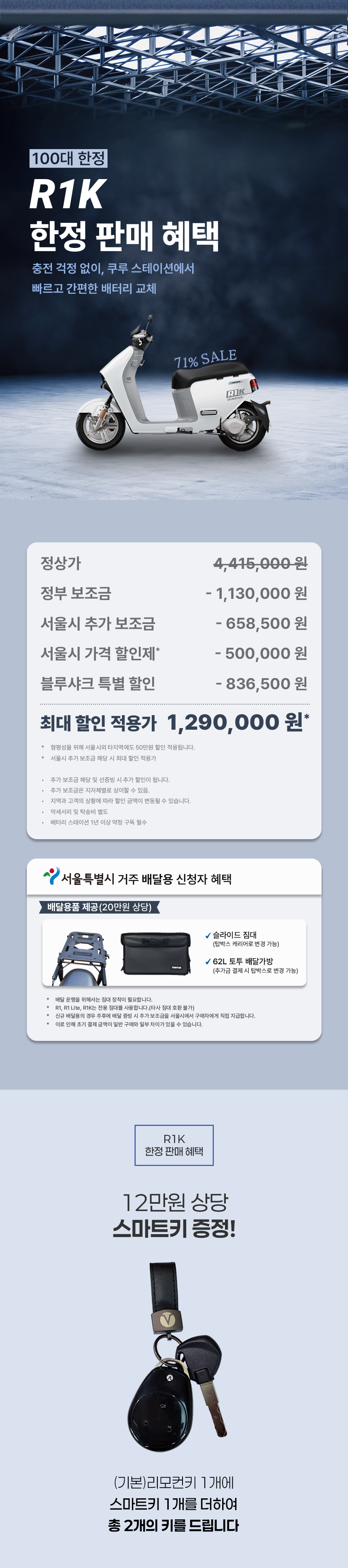 R1K 스쿠터, 리모컨키 1개, 스마트키 1개(프로모션시 제공)